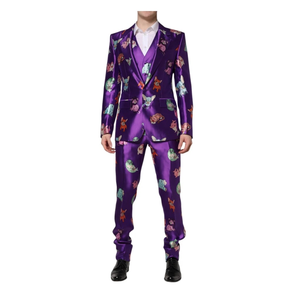 Dolce & Gabbana, Kostymer , Herr, M, Lila silke djurtryck 3-delat kostym
