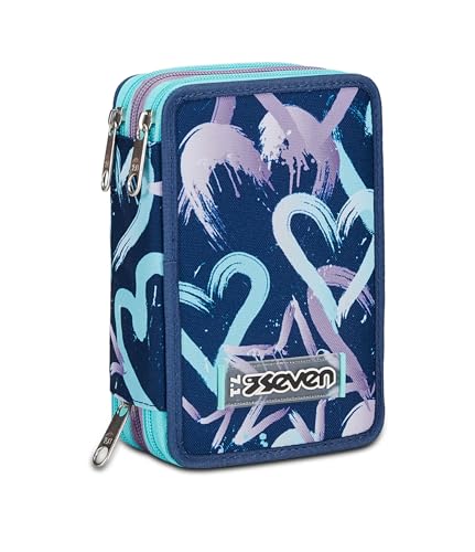 Seven Skolväska 3 dragkedja, lila vattengrön, kristall lila, pennhållare tre fack komplett med pennor, blyertspennor, färger, ryggsäckstillbehör, grundläggande, medium, flicka, Grön, Taglia Unica,