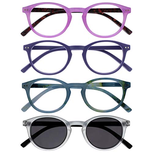 Opulize Zen 4-pack läsglasögon med solläsare rosa lila turkos kristall små män kvinnor RRRS24-45QC +3,00