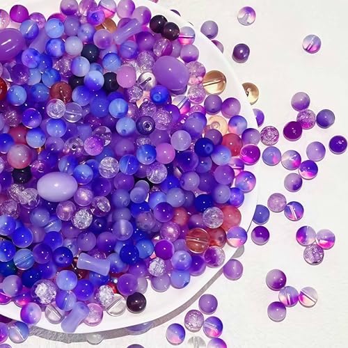 DAHI Glaspärlor, 550 st, runda kristallpärlor, kristallglaspärlor för smyckestillverkning, armband, halsband, örhängen (lila)