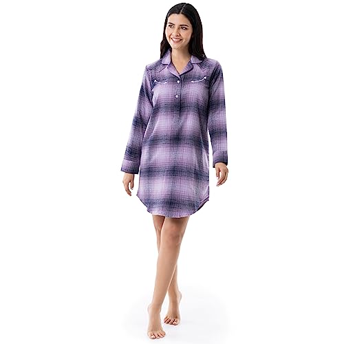 Wrangler dam medellång flanell-sovskjorta nattlinne, Lila ombre pläd, XL