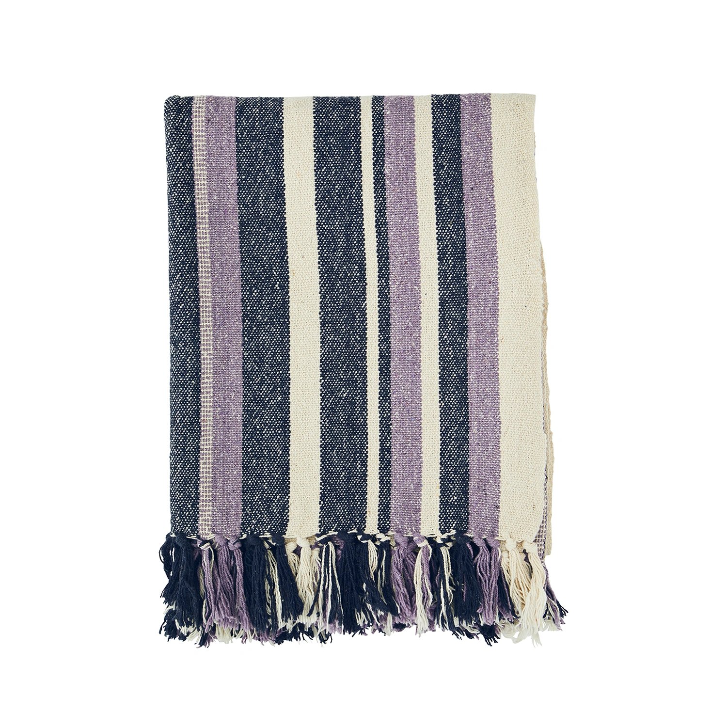 Pläd Återvunnen Bomull lila/mörkblå/offwhite, 125x175 cm