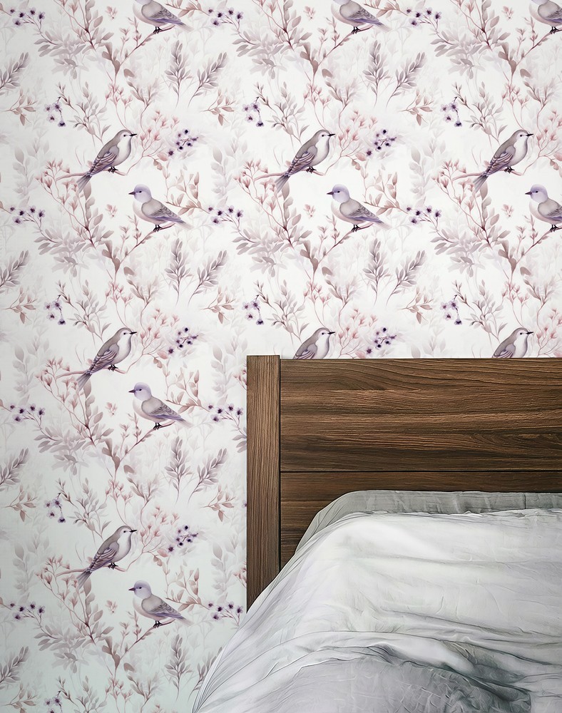 Amelia Purple - Tapet - Lila - Sovrum - Fåglar - Wallpassion - Non-Woven