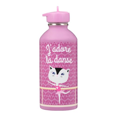 Barnflaska Draeger Paris rostfritt stål – lätt att rengöra – återanvändbar vattenflaska – perfekt för park, skola – kapacitet 300 ml – 17 cm x 6,5 cm – lila – skrivet meddelande: Jag älskar La Dance