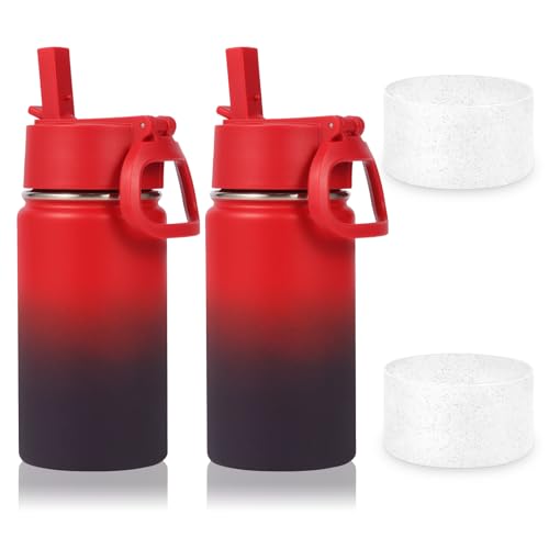 Volhoply Isolerad läckagesäker flaska i rostfritt stål för barn, vattenflaska med vakuum, sugrörslock, silikon, dubbla väggar, BPA-fri, enkel användning för pojkar och flickor, 2-pack (röd-lila, 2)