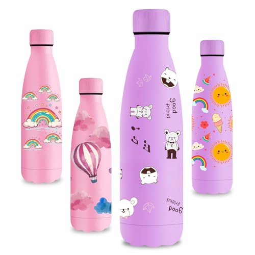 Vikastar Termisk flaska, 500 ml, BPA-fri, termosflaska för varma drycker, läckagesäker, vattenflaska för barn, rostfritt stål, för skola, sport, gym, cykling, lila-björn