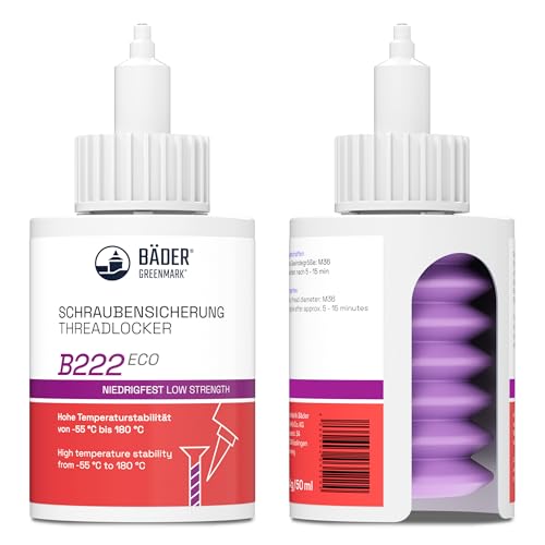 Bäder Threadlocker B222Eco låghållfast lila 50 ml flaska – högtemperaturbeständig, fluorescerande – fungerar på alla metaller och trådar, för stora trådar tillverkad i Tyskland