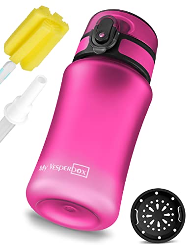 My Vesperbox – Mimmi – drickflaska för barn läckagesäker – 350 ml – med sugrör eller sil – lätt tritan vattenflaska – BPA-fri – för dagis, skola (lila 350 ml)