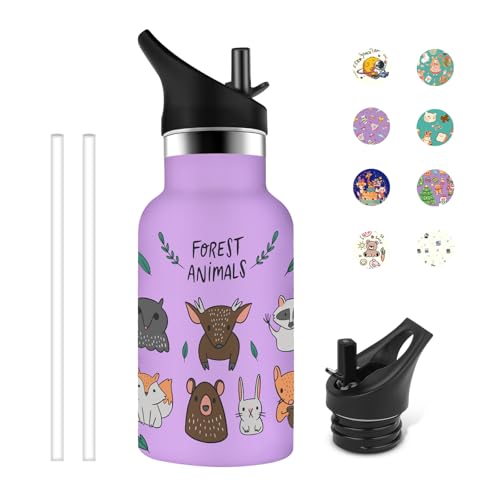 Grsta Barnflaska, 350 ml, 350 ml, läckagesäker liten termisk flaska, anpassad termisk vattenflaska med rådjur, BPA-fri, för kalla eller varma drycker, lila