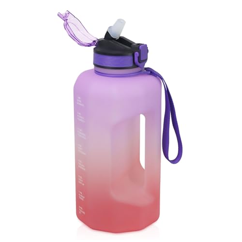 Motiverande 2.2L Vattenflaska med Tidsmarkör, Sportflaska för Gym, BPA Fri Stor Flaska för Man och Kvinna (Lila/Rosa)