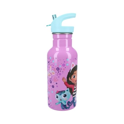 p:os Gabby's Dollhouse vattenflaska barn 430 ml – med sugrör – liten flaska perfekt för dagis, lekplatsen eller hemma – för flickor, lila
