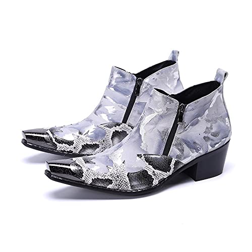 Lilac Fower Shop Vit Mäns Stövlar Öka Casual Short Boots Läderskor (Color : White, Size : 44 EU)