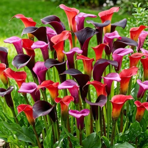 Lila & Svart & Röd Calla Lily Flower Bulbs Collection, Zantedeschia Bulbs, 5 riktiga och stora lökar som har mer än 5 blommor, perfekt för krukan, blomlökar från Holland