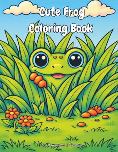 Cute Frog Coloring Book: Adorable Frog Coloring Pages for Kids and Adults | Kawaii Frogs with Mushrooms, Lily Pads and Flowers | Bold and Easy Relaxing Animal Coloring Book