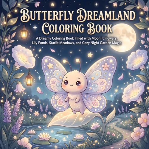 Butterfly Dreamland Coloring Book: A Dreamy Coloring Book Filled with Moonlit Flowers, Lily Ponds, Starlit Meadows, and Cozy Night Garden Magic