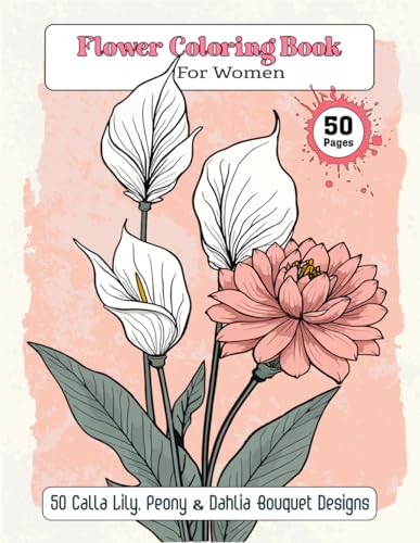 Flower Coloring Book for Women: 50 Calla Lily, Peony & Dahlia Bouquet Designs: Easy and Relaxing Coloring Pages for Adults for Calm, Creativity, and Mindfulness