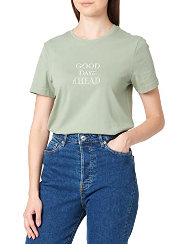 ONLY Kvinnors ONLRIKKI REG S/S Text Top Box JRS T-shirt, Lily Pad/Print: Good, M