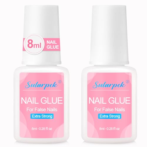 sularpek 2 st 7 ml lim falska naglar, nagellim med pensel, lim tips professionella naglar, extra starkt nagellim, reparation av trasiga naglar