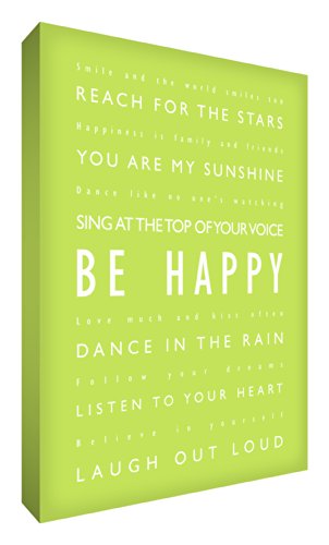 Feel Good Art 40 x 30 cm A3 Be Happy Modern Typografisk tjock låda kanvas 40 x 30 cm Limegrönt