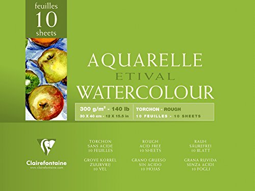 Clairefontaine 975318C – ett block, limmat på ena sidan, akvarellpapper Etival 15 ark, 21 x 29, 7 cm, 300 g, dubbel korn (fin korn och diskduk på baksidan)