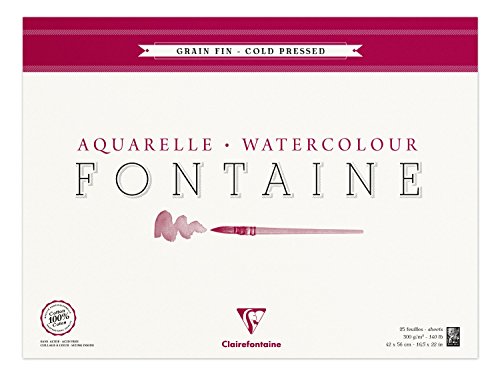 Clairefontaine 96417C målarblock, 4-sidigt limmat akvarellpapper finkornigt, fontain/hacka, 42 x 56 cm, 25 ark, 300 g förpackning, vit
