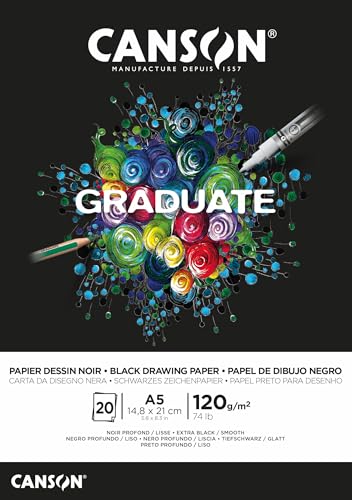CANSON block 20 ark Graduat svart ritpapper - limmat liten sida - A5 120 g/m²