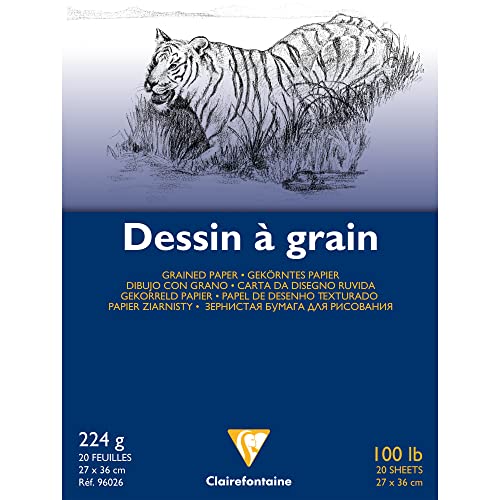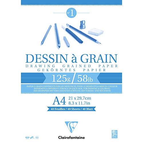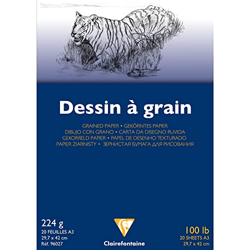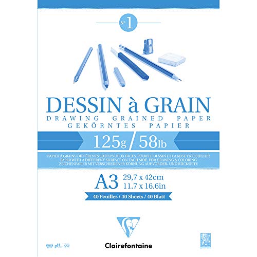 Clairefontaine - Ref 97114C - Vitt kornigt ritpapper limmat block (20 ark) - A3-storlek, 125 gsm papper, vitt och kornigt ritpapper, syrafritt, pH-neutralt