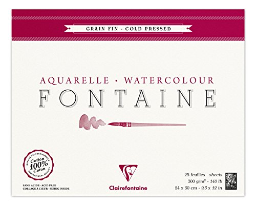 Clairefontaine 96415C målarblock, 4-sidigt limmat akvarellpapper finkornigt, fontain/hacka, 30 x 40 cm, 25 ark, 300 g förpackning, vit