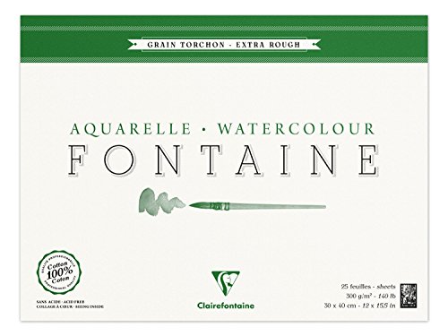 Clairefontaine 96430C målningsblock, 4-sidigt limmat akvarellpapper grovkornig torchon, fontain/hacka, 30 x 40 cm, 25 ark, 300 g förpackning, vit