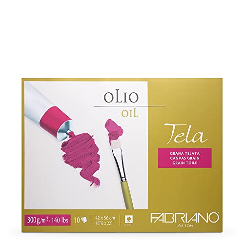 Honsell 68004256 – Fabriano "Tela" oljemålning kartong, oljemålningspapper med linnestruktur, 300 g/m², 42 x 56 cm, 10 blad, block 4-sidigt limmat, syrafritt och åldringsbeständigt