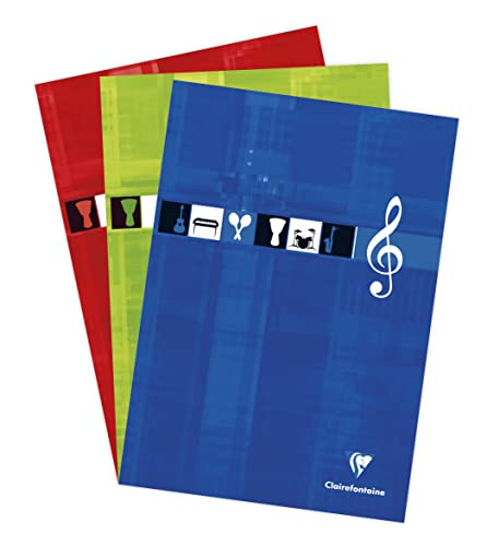 Clairefontaine 6157C - ett limmat musikblock 100 sidor med 12 intervall 21 x 29,7 cm 90 g, laminerat kort omslag färg