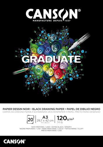 CANSON block 20 ark Graduat svart ritpapper - limmat liten sida - A3 120 g/m²
