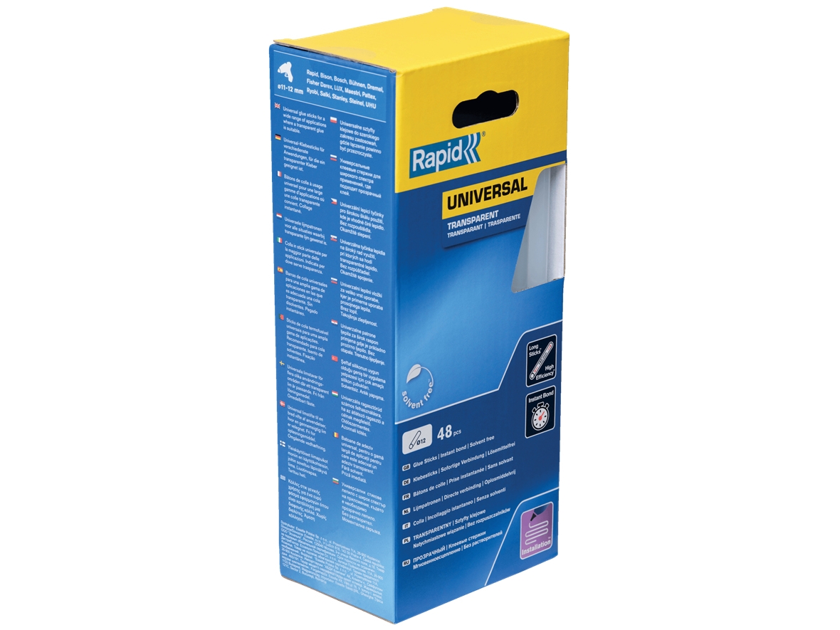 Rapid 12 Mm Limstavar - Universal Transparent, 48 Styck, Låda, 880 G, 73 Mm, 212 Mm, 100 Mm