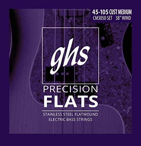 GHS Strings CM3050 4-strängad basprecision, platt lindning, 38 tums slinga, anpassad medium (.045-.105)