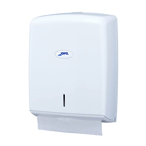 Jofel - Dispenser för handduk, Ansiktshandduk, Väggmonterad, Upp till 600 sicksackhandtorkar, Hygienisk, högkvalitativ ABS-lindning, Valor AH37000, Vit