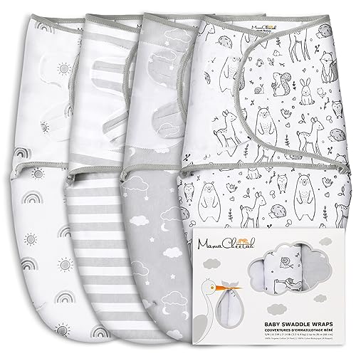 Mama Cheetah Baby lindväska, ekologisk bomullsfilt, justerbar nattväska, lätt lindning för pojkar flickor 0–3 månader, babynödvändigheter, 4-pack