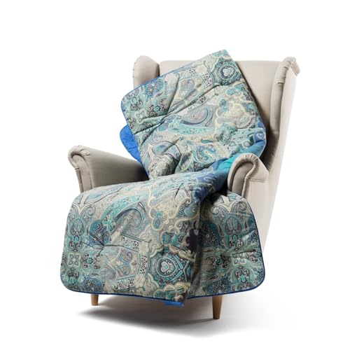 CALEFFI Värmet® - Rutig för soffa och säng 130 x 170 100% mjuk varm kammad bomull wrap-lindning, överkast för hantverk, tvättbart, antiallergiskt, sofföverdrag och överkast