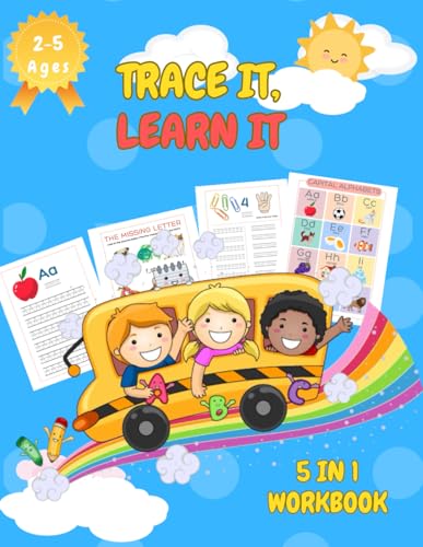 5-in-1 Trace It, Learn It Activity Book for Kids Ages 2–5 | Alphabets, Numbers, Lines, & More!: A fun workbook designed to help kids master pencil ... small letters, patterns, and numbers 1 to 10.