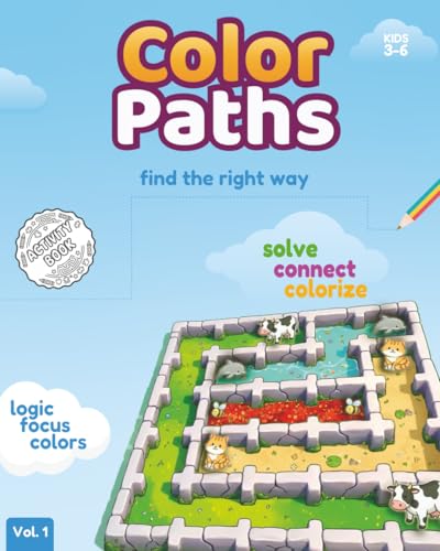 Color Paths: 70+ Color Paths. Find the Right Way and colorize It. Lines can’t cross each other! | Logic puzzles for kids | 8 x 10 Inches, 73 Pages
