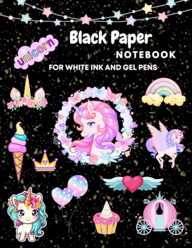 UNICORN BLACK PAPER NOTEBOOK FOR WHITE INK AND GEL PENS: It is a notebook with black pages and lines designed especially for gel pens. You can write and draw on it uniquely and beautifully