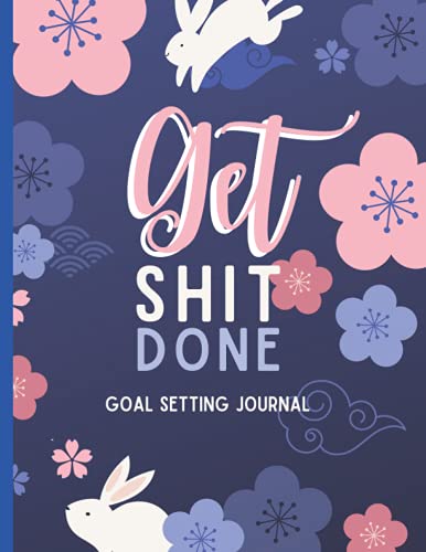 Get ShItDone Notebook: Goal setting Journal: Cute bunnies and floral blue Get Shit Done Journal - Funny Motivational Quote for Inspirational Goals Notebook 8.5 x 11 in 120 Pages lines