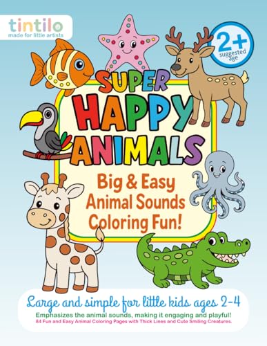 Super Happy Animals. Big & Easy Animal Sounds Coloring Fun.: Large And Simple For Little Kids Ages 2-4. Emphasizes The Animal Sounds, Making It ... with Thick Lines and Cute Smiling Creatures.