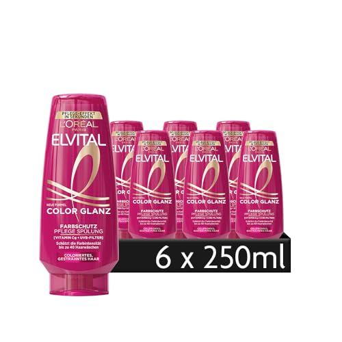 L'Oréal Paris Elvital balsam, färgskydd för färgat och slingat hår, med pionextrakt och linfröolja, färgglans, 6 x 250 ml