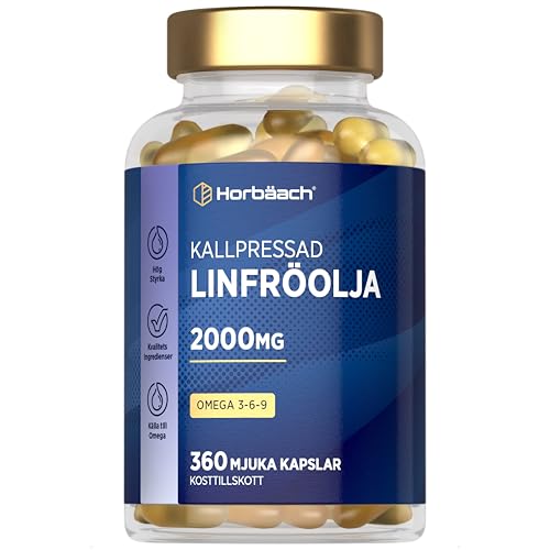 Linolja Kallpressad 2000mg | Linfröolja Kapslar | Cold Pressed Linseed Oil | 360 Vegan Softgels | Omega 3 6 9 och Alfa Linolensyra | av Horbaach