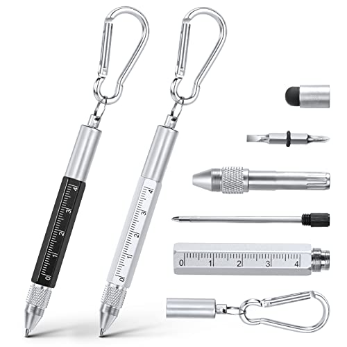 Vicloon multiverktygspenna, 6-i-1 multiverktygsprylar för herr, pappa, farfar, morfar, inkluderar kulspetspenna, pekskärm, linjal, nyckelring, platta och stjärnskruvmejsel, gåvor (svart + silver)
