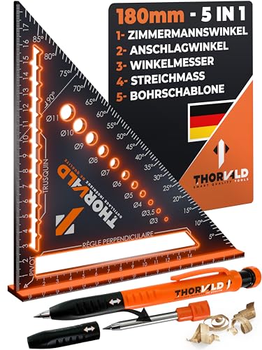 5 i 1 snickarvinkel, 180 mm - inklusive platspenna, multifunktion: Mätare/gradskiva/linjal/vinkeljärn – aluminium, verktyg för snickare för att spara tid.