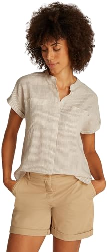 TOMMY HILFIGER dam ESS linne krage lös S/S blus, WW0WWW44715, Vit (Classic Ithaca/Sandelträ), 36