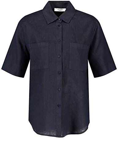 Gerry Weber Dam lång blus av linne med sidoslitsar lång ärm, manschetter, kramarm, armstångblus långärmad lång blus enfärgad, marinblå, 36