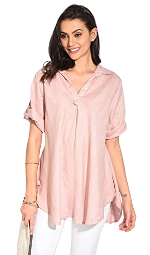Bonateks Dam 100% linne tunika tillverkad i Italien, tunisisk krage blus med knappar på framsidan, linne, storlek: M, linne, M