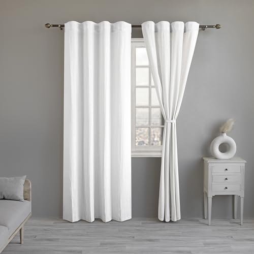 MARTHA STEWART Lido linne mörkläggning skum fodrad stång ficka/baksida flik fönster gardin panel par, 241 cm, vit